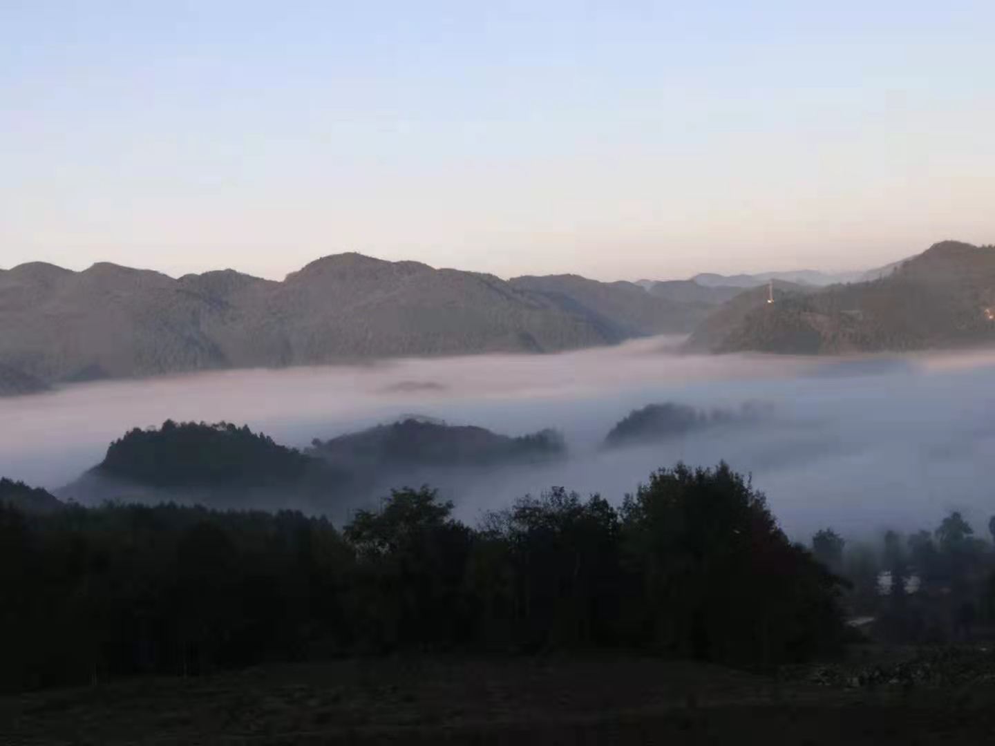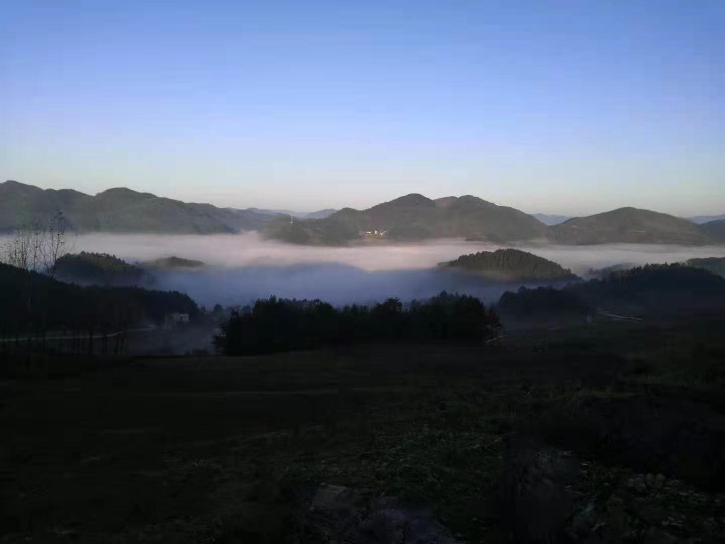 大自然给年轻的果园蒙上一层神秘的面纱,太阳羞于她的美丽与活力而隐藏于山峦之下。