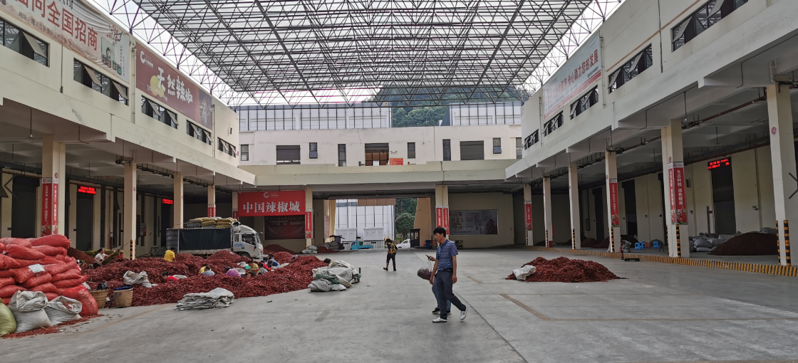 中国辣椒城是全国最大的辣椒专业批发市场,占地640亩,已建成的一期项目占地440亩,建筑面积25万平方米,布局有鲜椒市场、检验检疫区、交易中心、电商交易中心、冷链仓储区、物流配送区及综合配套区,有上万人从事辣椒交易、仓储和运输工作。每年,中国辣椒城有40万吨辣椒流向全国各地及多个国家和地区,年交易额达60亿元。